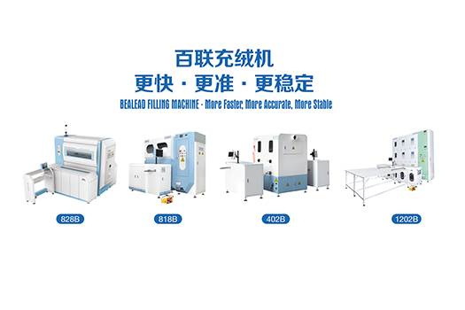 百聯(lián)展品:828B第四代充絨機(jī)、全自動(dòng)裁片編號機(jī)、全自動(dòng)發(fā)貨包裝機(jī)、百聯(lián)羽絨、百聯(lián)軟件