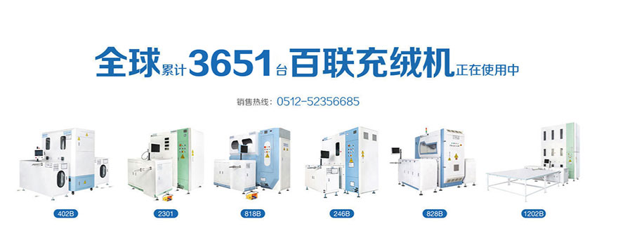 主展產(chǎn)品:618C全自動四口流量法充絨機; 402B全自動稱重充棉機