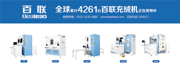 百聯(lián)展品:X型模塊化自動充絨機、402D全自動絨棉一體機