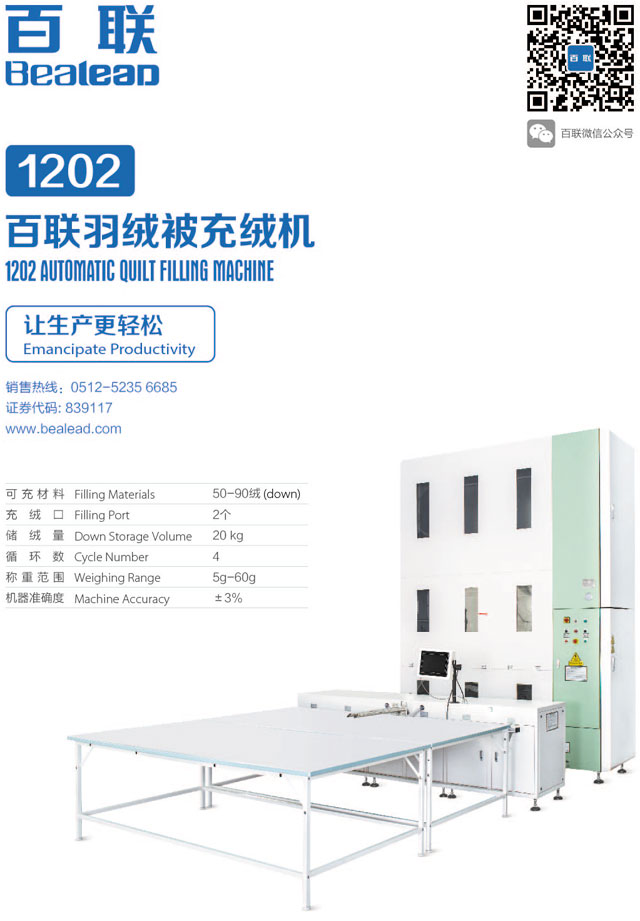 百聯(lián)展品:1202羽絨被充絨機(jī)、102B商超羽絨被充絨機(jī)、枕頭壓縮包裝機(jī)
