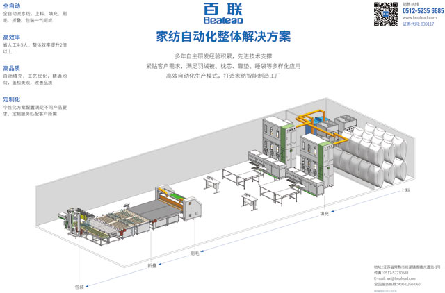百聯(lián)作為提出家紡整體解決方案的公司,將在本屆展覽會(huì)上重點(diǎn)強(qiáng)調(diào)“定制化”,從填充、刷毛、檢針折疊到壓縮包裝入袋等環(huán)節(jié),針對(duì)不同的客戶需求提供家紡領(lǐng)域?qū)I(yè)化的定制產(chǎn)品與服務(wù)。