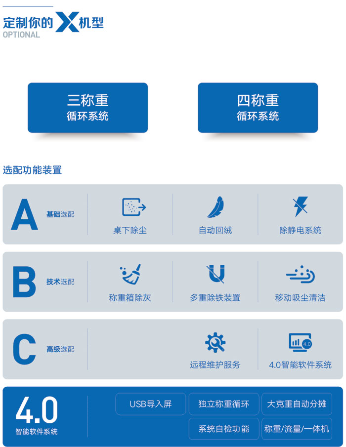 在雙口機型的基礎(chǔ)上升級成四口流量法機型,適用80-90g羽絨,填充范圍0.2-3g,主要針對國內(nèi)部分內(nèi)銷品牌企業(yè)的應(yīng)用需求。
