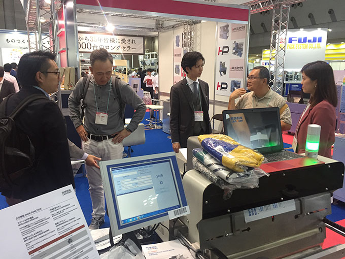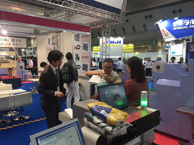 此次展出的P505S型自動發(fā)包機(jī)集成驗貨、打印、貼標(biāo) 和封口一體化解決方案 ,適用于T 恤、襯衫、連衣裙、牛仔褲等快遞袋形式包裝的服裝企業(yè)。具有智能打印、高效省工、包裝美觀、節(jié)能環(huán)保等多項技術(shù)優(yōu)點,吸引了“JAPAN PACK 2017”參觀者的積極關(guān)注。