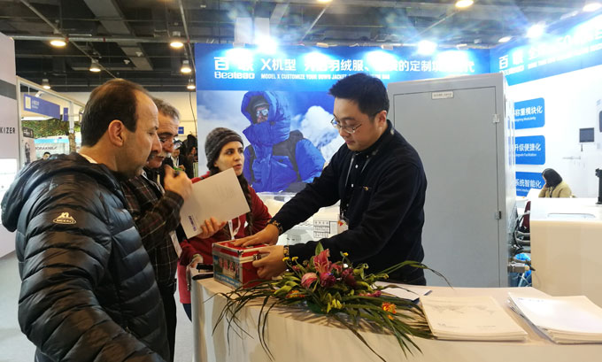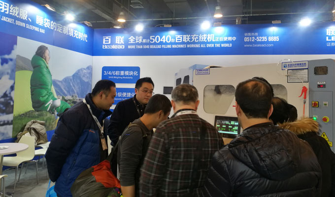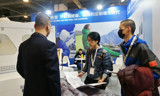 在ISPOBeijing 2018期間,百聯(lián)首次以參展商的身份亮相,展出了可滿足“羽絨服+睡袋”一體化生產(chǎn)需求的X模塊化定制機(jī)型,即在一臺(tái)機(jī)器上實(shí)現(xiàn)了羽絨服、睡袋兩種產(chǎn)品材料的同時(shí)填充,大幅提高了填充效率以及充絨機(jī)的應(yīng)用價(jià)值,得到了現(xiàn)場(chǎng)專業(yè)觀眾的好評(píng)。