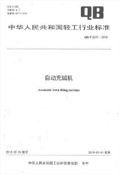 自2018年7月1日起,由百聯(lián)牽頭主起草的編號為QB/T5225-2018 號的“自動充絨機”行業(yè)推薦性標準正式實施了。該標準規(guī)定了自動充絨機的術(shù)語和定義、產(chǎn)品分類、要求、試驗方法、檢驗規(guī)則、標志、包裝、運輸和貯存,適用于自動充絨機,其他充填物的類似設(shè)備可參照執(zhí)行。