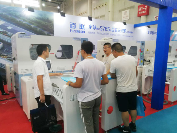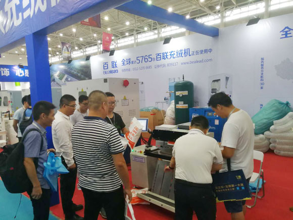 百聯(lián)一直重視參與以武漢為重點(diǎn)的華中紡織服裝產(chǎn)業(yè)轉(zhuǎn)型發(fā)展進(jìn)程,以具有核心技術(shù)的纖維填充設(shè)備和高效的物流自動(dòng)化解決方案為當(dāng)?shù)乜蛻籼峁┧璧漠a(chǎn)品與服務(wù)。在本次展會(huì)期間,百聯(lián)主要展示了4401、2601、全新X機(jī)型、402D雙口絨棉一體機(jī)等升級(jí)版的充絨或充棉類設(shè)備,并針對(duì)當(dāng)?shù)仉娚痰陌l(fā)展以及物流自動(dòng)化的需要重點(diǎn)展示了505S型發(fā)貨包裝機(jī)。從現(xiàn)場(chǎng)反饋的情況看,這些產(chǎn)品滿足了當(dāng)?shù)赜脩籼岣呱a(chǎn)效率、促進(jìn)生產(chǎn)升級(jí)的需求,受到了大家的積極關(guān)注。