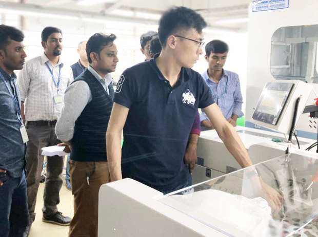 在展會現(xiàn)場,有許多當(dāng)?shù)氐挠脩魧3陶业桨俾?lián)展位,了解新產(chǎn)品的情況,就設(shè)備的引進(jìn)提出需求。自2016年起,百聯(lián)就逐年加大了在孟加拉國的產(chǎn)品銷售與市場服務(wù)的力度,與海外經(jīng)銷合作伙伴一起為當(dāng)?shù)赜脩舻姆b生產(chǎn)提供了可靠的技術(shù)和服務(wù)支持。