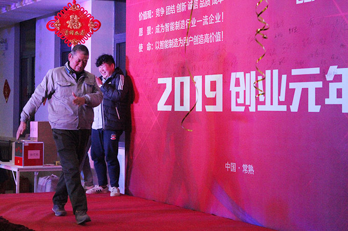 董事長錢衛(wèi)波在隨后的新春致辭中表示了2018年公司的動(dòng)態(tài),以及對未來公司發(fā)展的愿景。在2018年,不僅融資引入了新的資本,還建成了具有戰(zhàn)略發(fā)展意義的“智能制造”新基地,并耗資數(shù)千萬重裝上線德國TRUMPF的智能生產(chǎn)線。