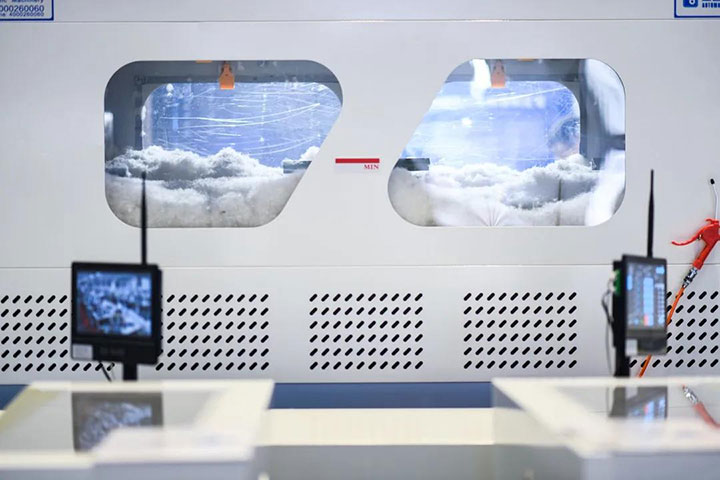 其中,402E全自動(dòng)稱重充棉機(jī)適用于各種纖維棉的填充,在省工、高效、環(huán)保以及減輕工人勞動(dòng)強(qiáng)度、提高生產(chǎn)精度和品質(zhì)等方面表現(xiàn)出色,其質(zhì)量及性能久經(jīng)市場(chǎng)檢驗(yàn),即使在當(dāng)下,仍是棉服生產(chǎn)企業(yè)的理想助手和高性價(jià)比之選。而全新優(yōu)化設(shè)計(jì)的DF-4604-X全自動(dòng)稱重絨棉一體機(jī),集成了桌下除塵、數(shù)據(jù)自動(dòng)導(dǎo)入、獨(dú)立稱重循環(huán)和大克重自動(dòng)分?jǐn)偂⒆詣?dòng)控制溫度、自動(dòng)回絨等多種功能,性能參數(shù)進(jìn)一步優(yōu)化,提升了充絨品質(zhì)并提高了羽絨原料的利用率、降低材料成本,還能根據(jù)用戶實(shí)際需要選配安卓電腦屏,實(shí)現(xiàn)機(jī)器數(shù)據(jù)與工廠數(shù)據(jù)軟件系統(tǒng)的直接對(duì)接,提高數(shù)據(jù)化處理水平。