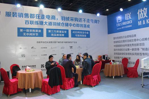 展會(huì)現(xiàn)場(chǎng)客戶絡(luò)繹不絕,很多都是常熟本地已使用我們百聯(lián)充絨機(jī)的老客戶,看到我們百聯(lián)練塘大道羽絨倉(cāng)儲(chǔ)中心即將落成的消息非常感興趣,我們擁有16家羽絨生產(chǎn)企業(yè)直接供貨,直接采購(gòu),無中間環(huán)節(jié);第三方質(zhì)量監(jiān)管,羽絨有品質(zhì)保障;400噸現(xiàn)貨倉(cāng)儲(chǔ),可隨用隨提。為常熟的用絨企業(yè)減少采購(gòu)成本,現(xiàn)場(chǎng)客戶了解后就簽約提貨!