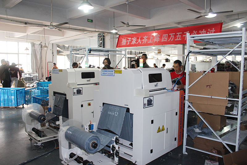 這是恒源祥第一次利用"打包神器"來處理海量的雙11訂單,實(shí)戰(zhàn)效果令人滿意。百聯(lián)發(fā)包機(jī)對(duì)接工廠ERP管理系統(tǒng),可即時(shí)打印面單,并根據(jù)商品的條形碼準(zhǔn)確貼面單,杜絕誤發(fā)商品的問題。在倉(cāng)庫(kù)完成審單、揀貨等工作后,工人們就直接訂單商品放入百聯(lián)發(fā)包機(jī)自動(dòng)打開的快遞包裝袋中,由機(jī)器自動(dòng)開口、利用熱熔封口。上述步驟一氣呵成,完成一個(gè)包裹所需時(shí)間不過六七秒。